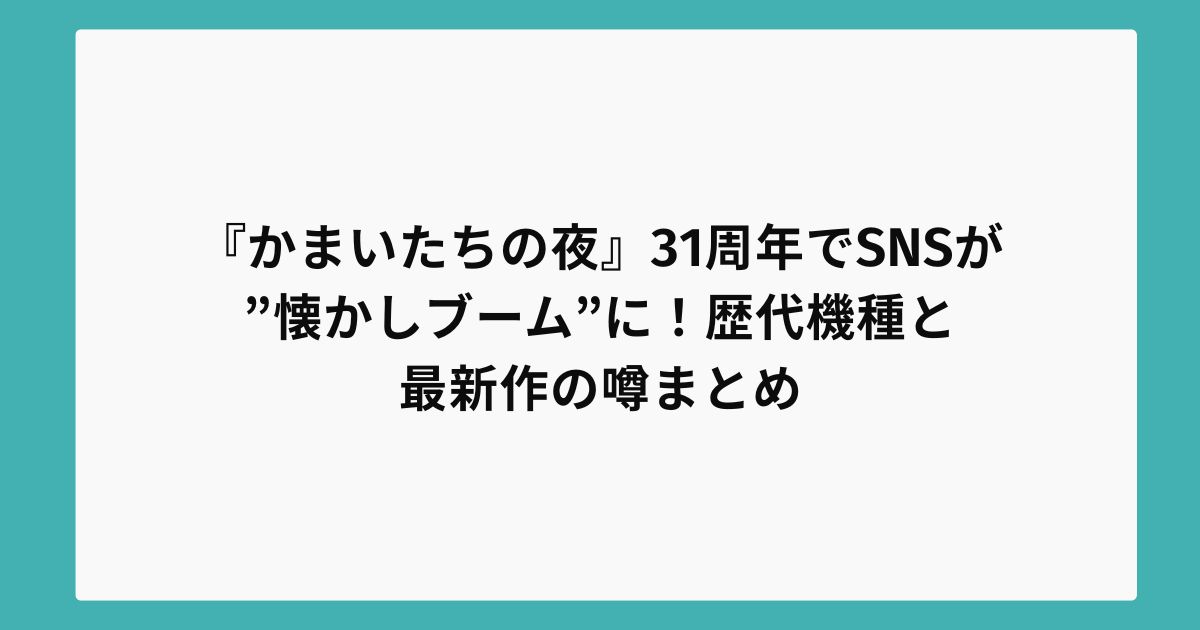 『かまいたちの夜』が31周年を迎え、SNSでは懐かしむ声とともに、再び熱狂的な盛り上がりを見せています